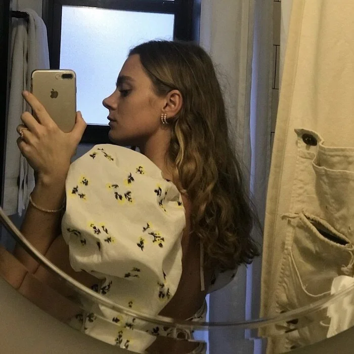 I use REN Clean Screen Mineral SPF every day and love to treat myself with Odacité serums. I rarely wear make up, especially now when I am wearing a mask every time I leave the house. But, when I something important is coming up, I curl my lashes and brush my eyebrows with Glossier’s Clear Boy Brow.